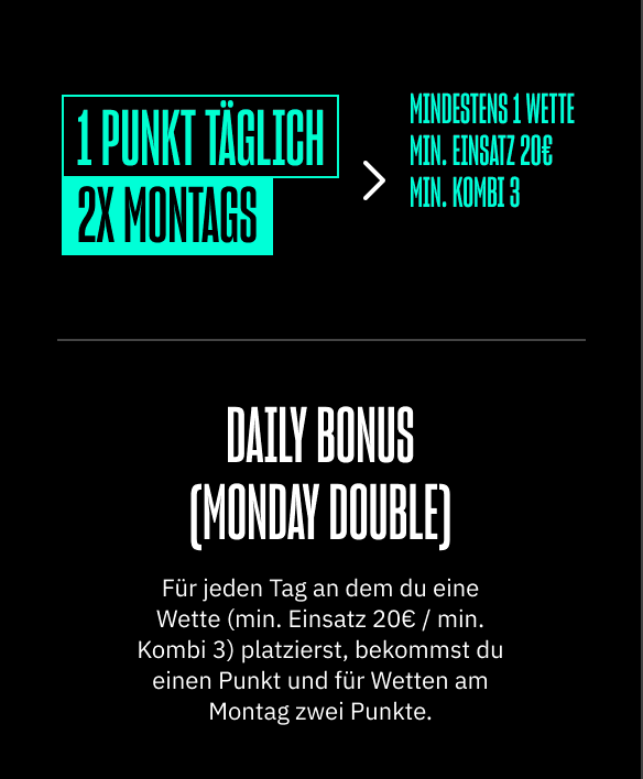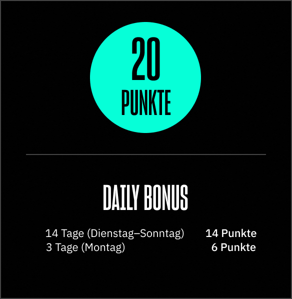 1. Pro Tag kann maximal 1 Punkt bzw. an Montagen 2 Punkte gesammelt werden.