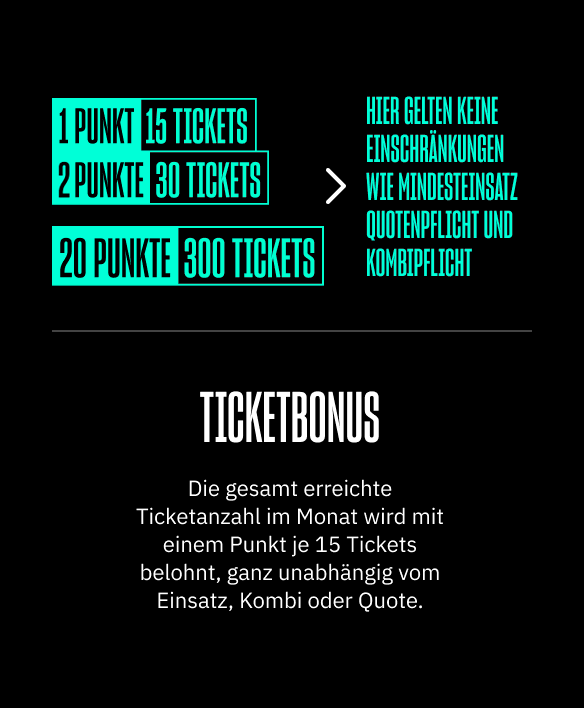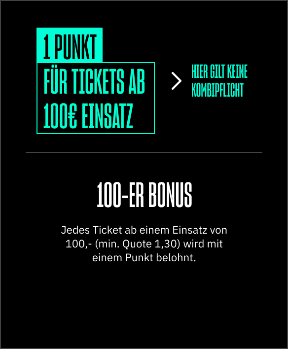 1. Jedes Ticket ab einem Einsatz von 100€ wird mit einem Punkt belohnt.