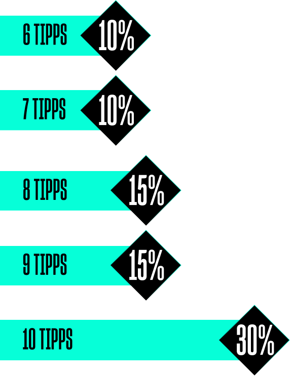 2. Es muss eine Wette mit einem Mindesteinsatz von 20€ und einer Mindestkombination von 3 Spielen abgegeben werden.